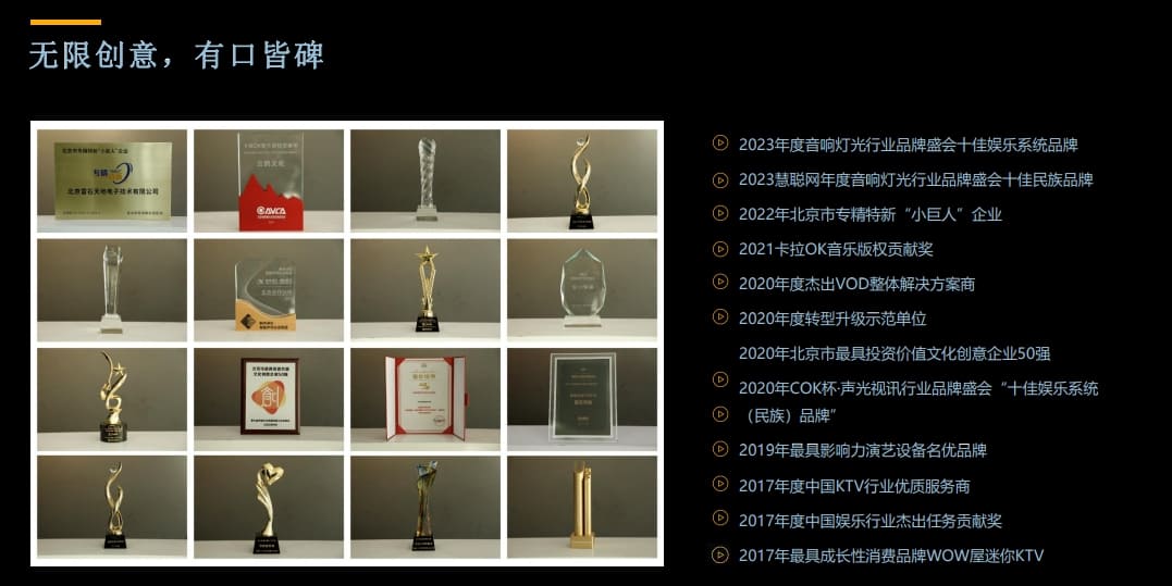 公司经营一流品牌有雷石VOD 、雷客全系列产品、美国卡夫影院系列、JBL娱乐及会议音响、LEISHI进口百变龙单元订制音响。私人影院泉州地区加盟运营中心、LEISHI系列别墅私人影K系统、高清智能3D影K点歌机、英华酒店管理系统全模块、 为闽南地区售后培训办事处、4S服务商、负责闽南地区相关产品的经销商的管理及服务工作。
